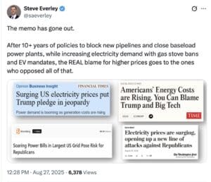 Admittedly, Emanuel’s framing titled “Rising Electricity Price? Thank Trump: Bigger bills are a direct result of the One Big Beautiful Bill Act, which cut green-energy subsidies,” is rather less detailed and more straight-line: the bill to trim subsidies passed, your bills are (still) going up…coincidence? I think not.